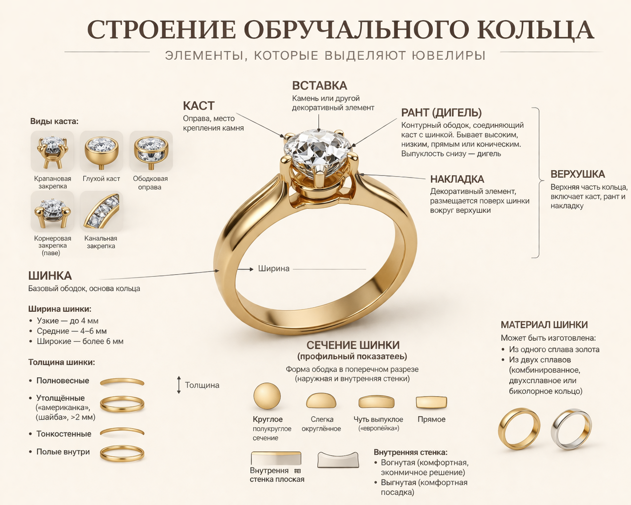 Строение обручального кольца: названия всех элементов